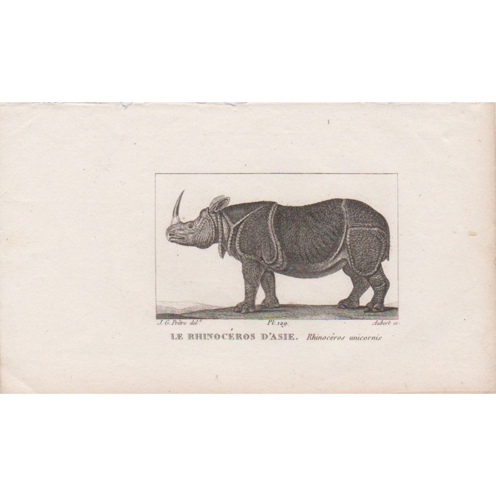 1830 Rhinoceros Asian Rhino Safari Animal Print Original Old Antique Animal Print Buffon Natural History Zoology in mount