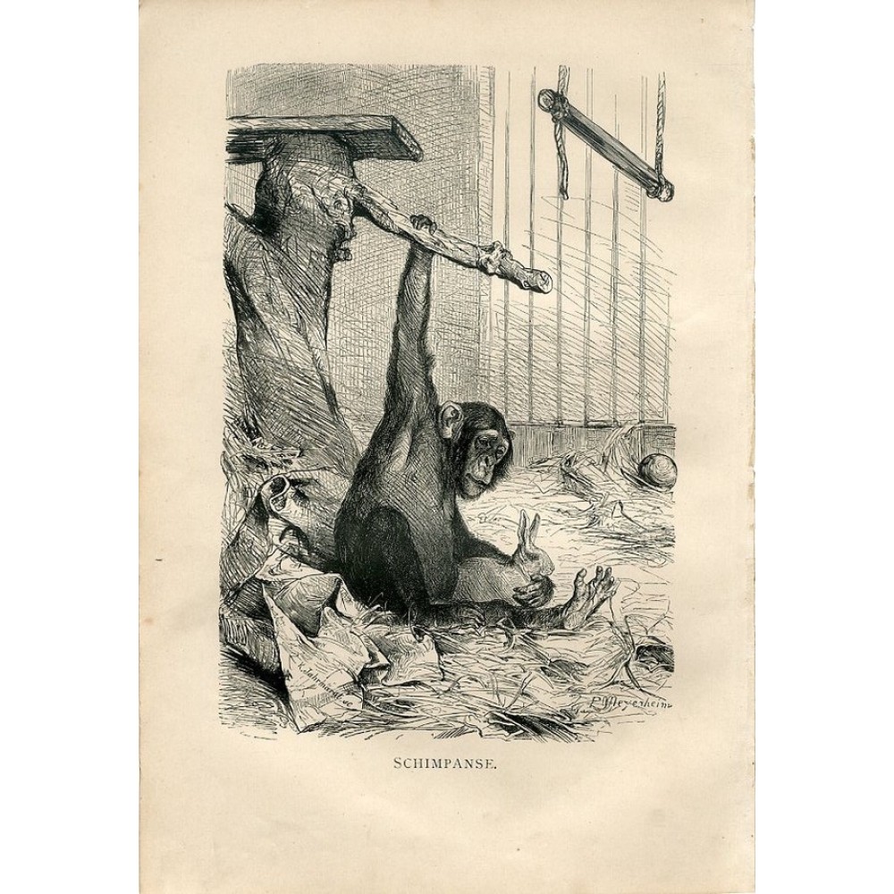 Chimpanzee and Rabbit - Original 1876 Engraving by Meyers. Fliegen und Schneckenblumen. Antique Original antique German chromolithograph print old double book plate (not a modern reproduction)comes from a German lexicon. The print has been printed by Bibliographisches Institut Leipzig,Germany in 1900. The overall size of this print with margins approx 11 3/4" x 9 3/4" or 30cm x 24,5cm and suitable for framing. The reverse side - clear Joseph Meyer (May 9, 1796 - June 27, 1856) was a German industrialist and publisher, most noted for his encyclopedia, Meyers Konversations-Lexikon. The German publishing company Bibliographisches Institut was founded 1826 in Gotha by Joseph Meyer, moved 1828 to Hildburghausen and 1874 to Leipzig. Its production over the years includes such well-known titles as Meyers Lexikon (encyclopaedias, since 1839, see Meyers Konversations-Lexikon), Brehms Tierleben (animal life, 1863-1869, 4th ed. 1911-1918); Duden (dictionaries on every aspect of the language, since 1880); Meyers Reisebücher (guide books, 1862-1936); Meyers Klassiker (home and foreign literature); atlases (Meyers Handatlas, Der Grosse Weltatlas), newspapers (Koloniale Zeitschrift) and others. Very decorative.It looks great when framed. The print in the original is more brighter and better. 1876 A.Brehm CHIMPANZEE and RABBIT APE MONKEY Antique Engraving Print Condition:-- Ended: May 30, 2019 , 10:17PM Winning bid:US $0.99 Artist P.Meyerheim. Original old German wood engraving print. Very decorative.It looks great when framed and can be professionally painted. This is an authentic antique(not a modern reproduction)beautiful print comes from a German "Tierleben" by A.Brehm. Printed by Bibliographisches Institut Leipzig,Germany,1876. Alfred Edmund Brehm (February 2, 1829 - November 11, 1884) was a famous German zoologist. The overall size of this print approx 10" x 7" inches and ready for framing. Condition can be see from the scan.