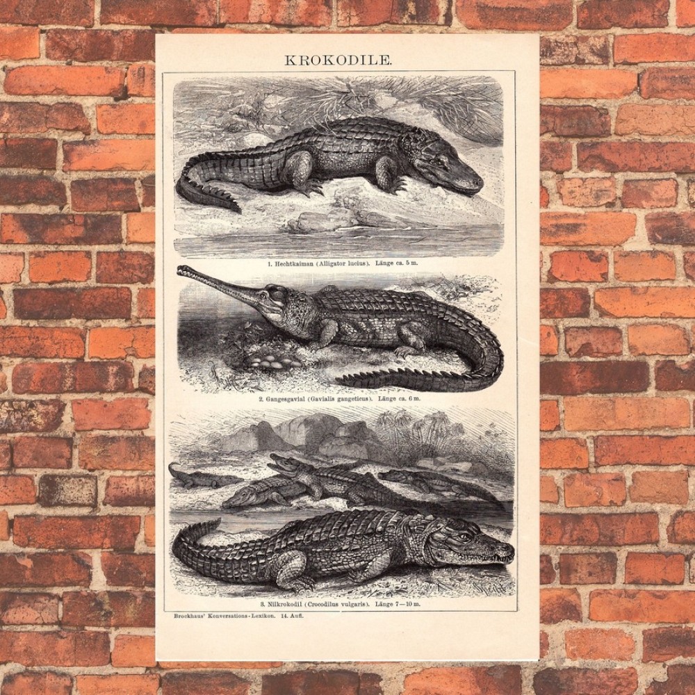 Common Crocodile - Original 1895 Engraving