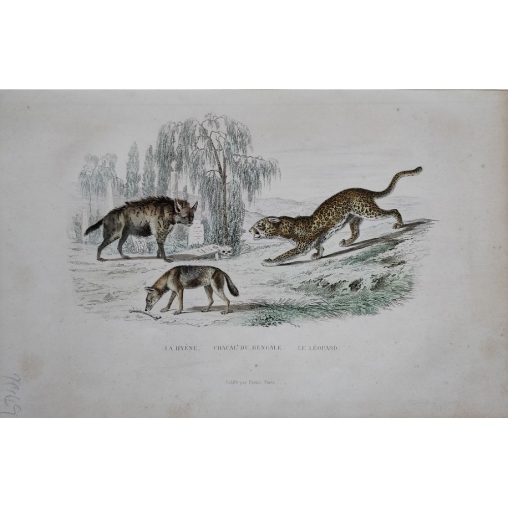 Antique hand-painted engraving, published in Paris between 1844 and 1849 for “Oeuvres complètes de Buffon…” by the Comte de Buffon and Georges Cuvier. Beautiful colors and good condition.