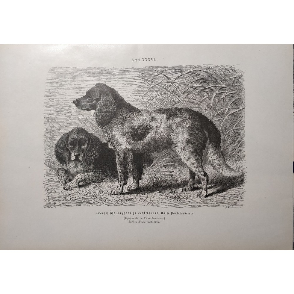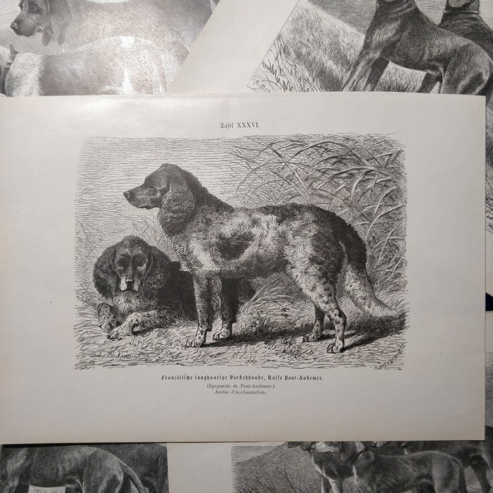 Jagdhunde, 6 Holzstiche ca, 1890