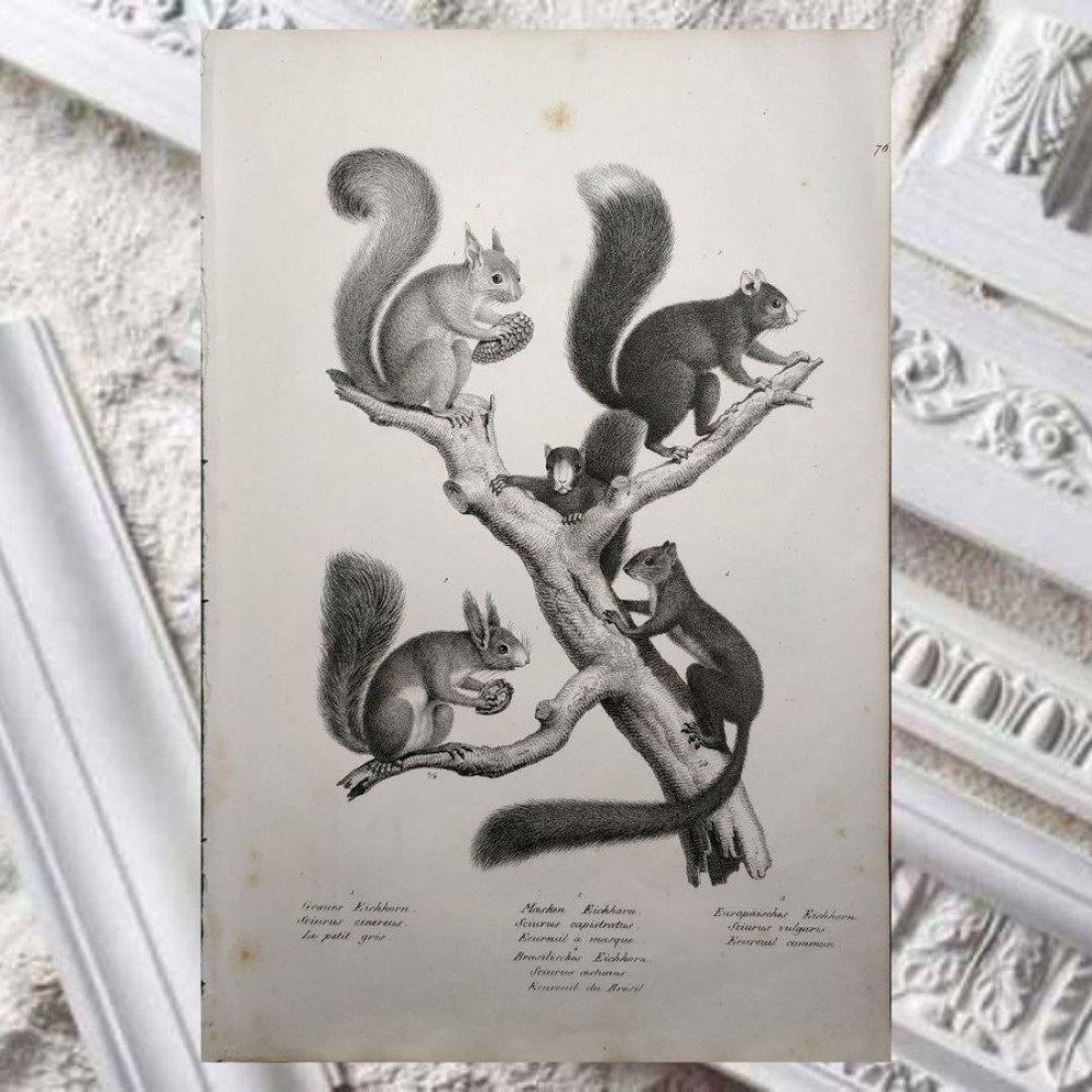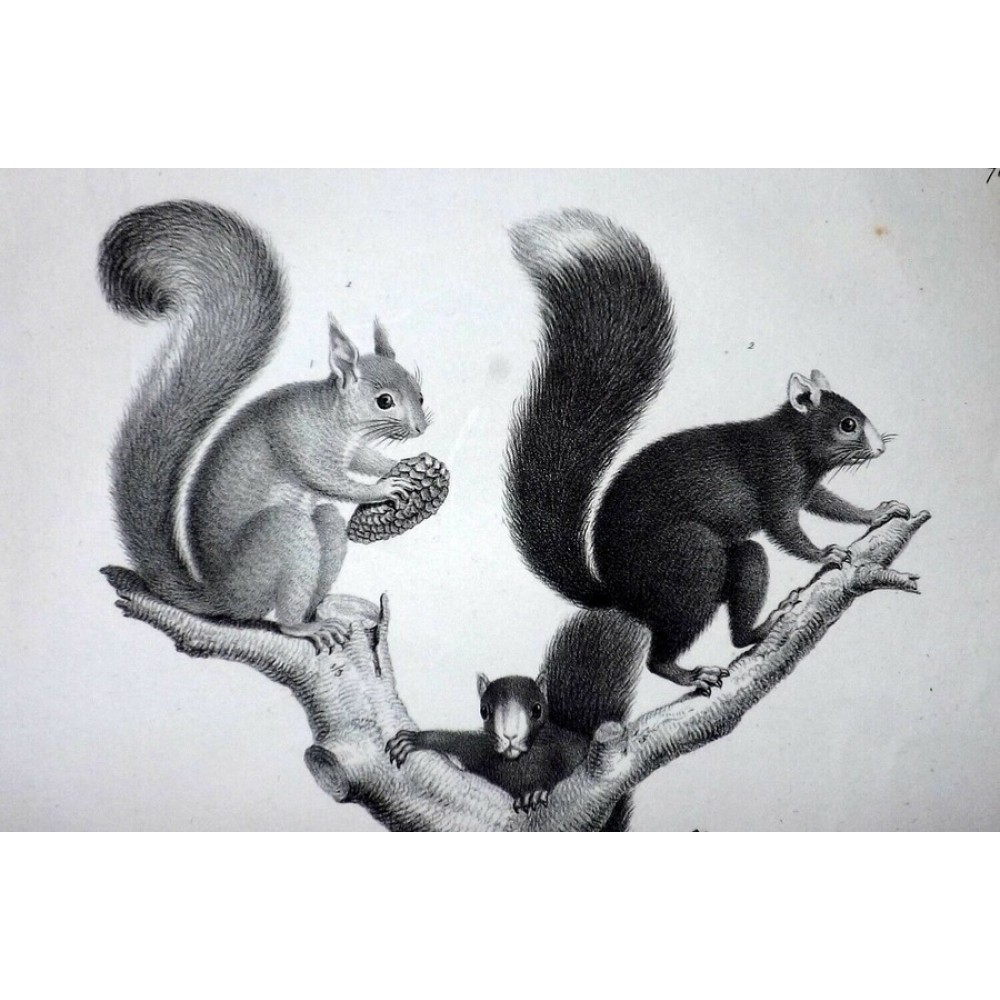 Schinz 1827 Lot of 3 Folio Prints. Rabbit, Porcupine, Squirrel. Book Plates