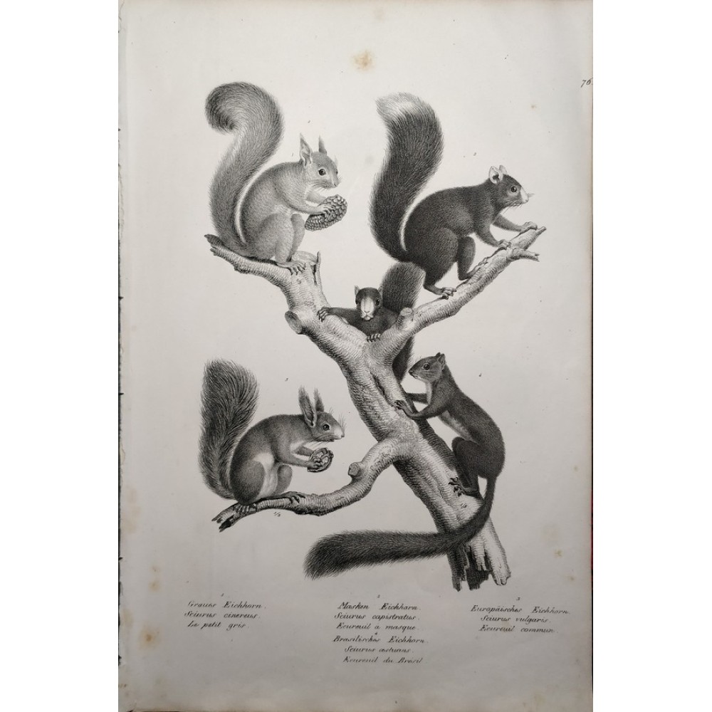 Antique Folio Lithograph Published Zurich 1827 for "Naturhistorische Abbildungen der Saeugethiere" by Heinrich Rudolph Schinz. Lithographed by Karl Joseph Brodtmann.