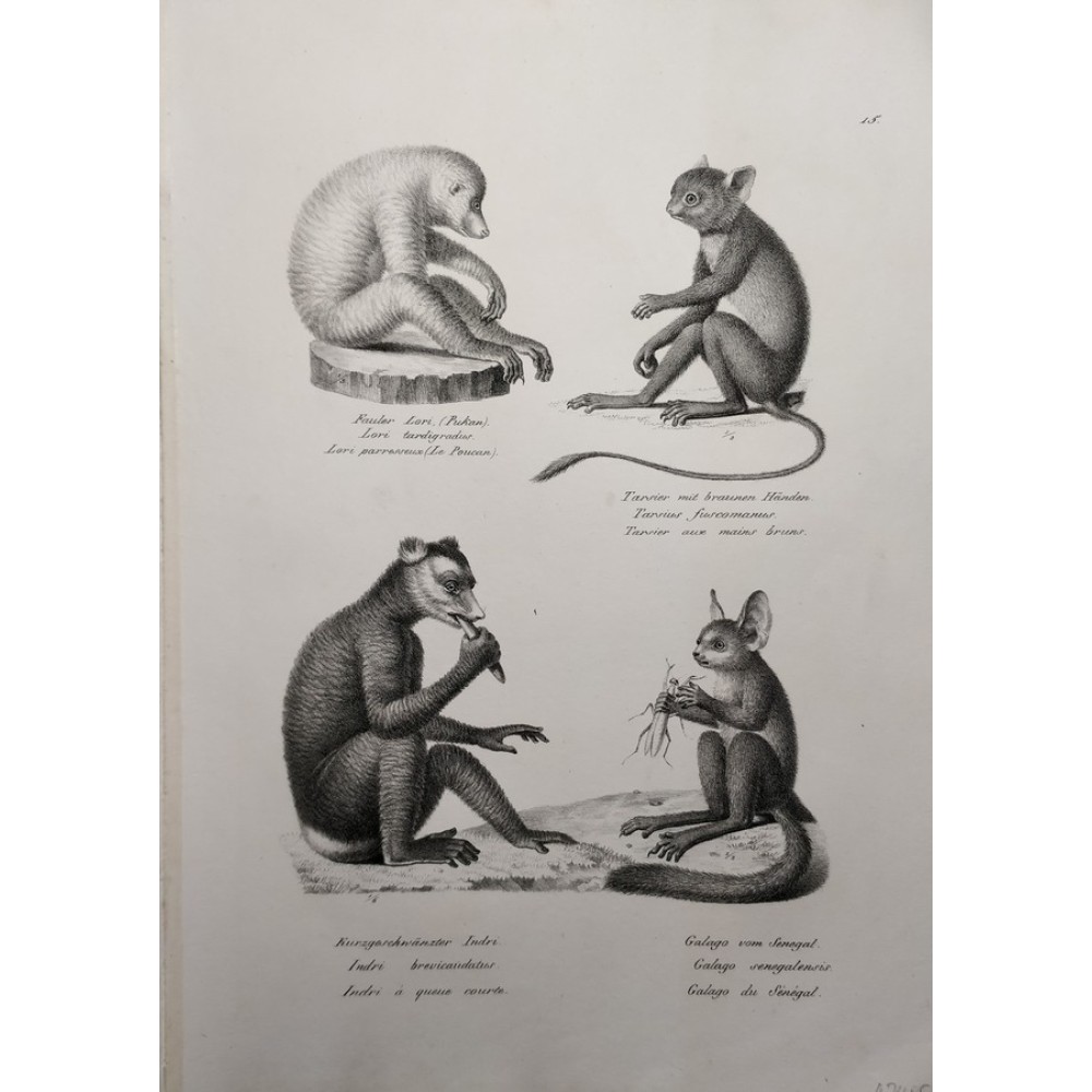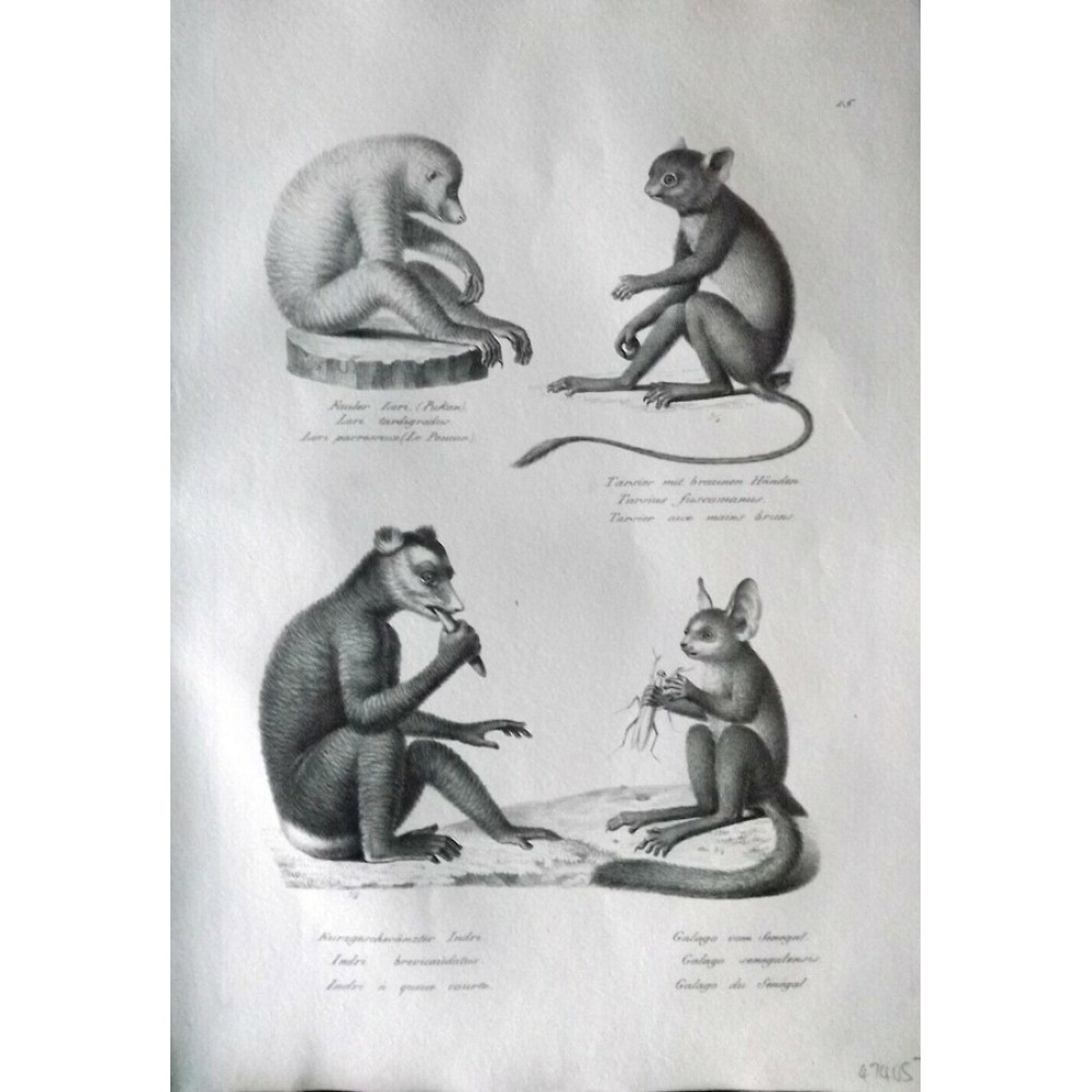Schinz 1827 Lot of 4 Folio Monkeys & Lemur Prints. Book Plates