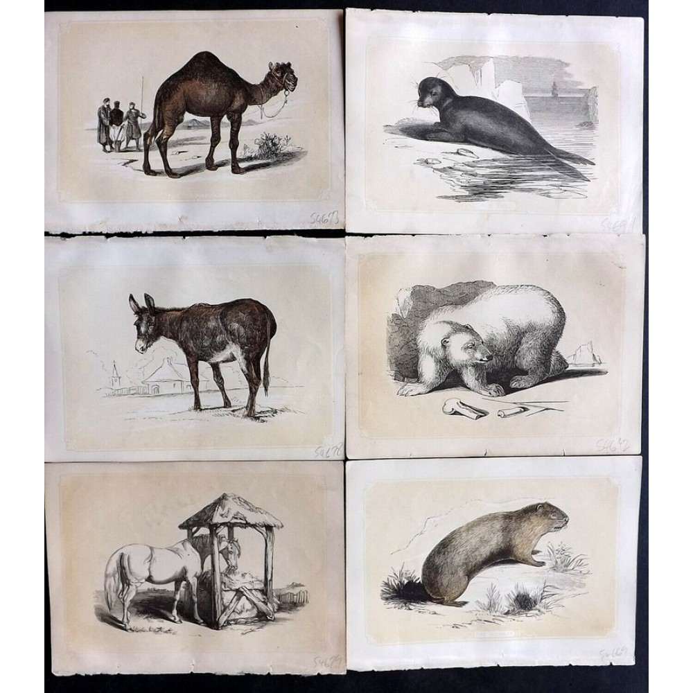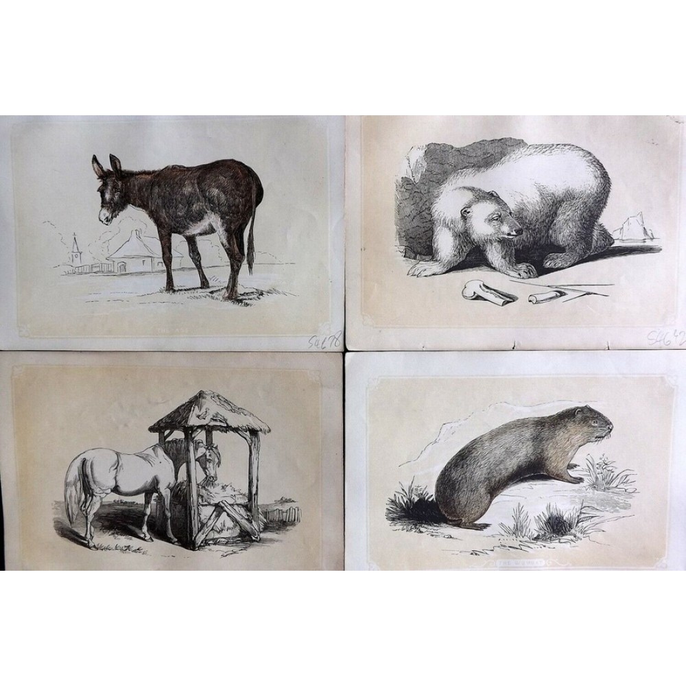 Набор антикварных цветных гравюр, раскрашенных в ручную из книги "The Natural History of The Sacred Scriptures, and Guide to General Zoology" автора W. I. Bicknell.