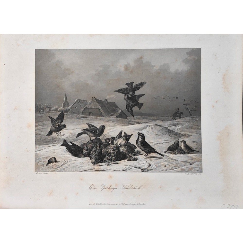 Antique German engravings – steel plate prints – by A.H. Payne, Wagner & W. French, Leipzig.