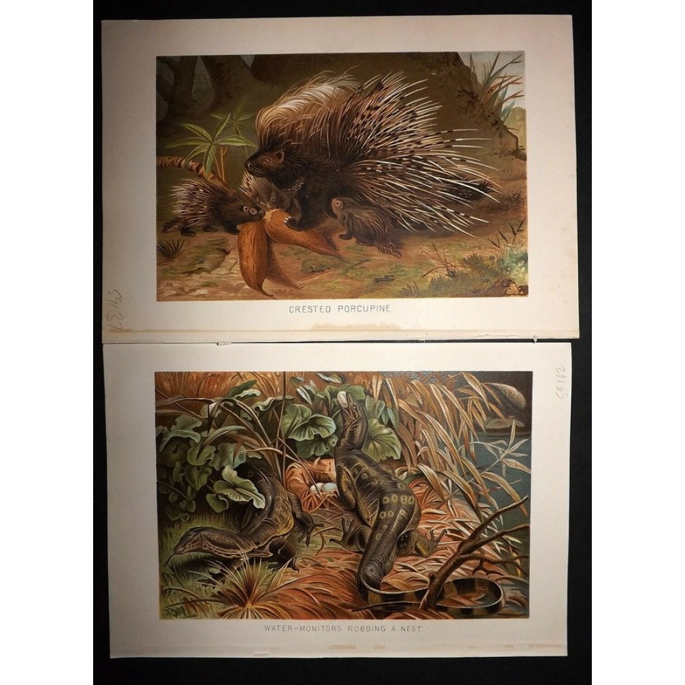 1895 Porcupine & Water Monitor Lizards Natural History Antique Prints Lydekker Book Plates Illustration