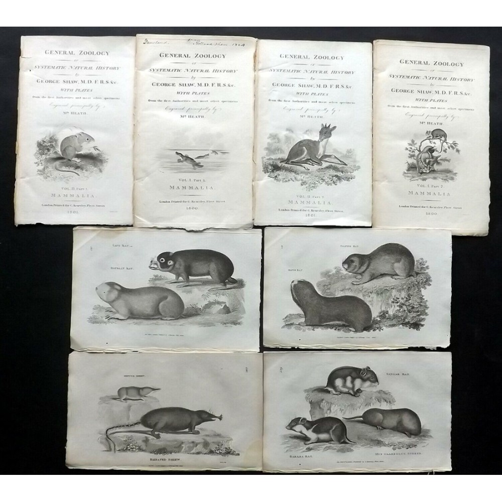 1800 Lot of 8 Antique Natural History Antique Prints George Shaw Book Plates Illustration