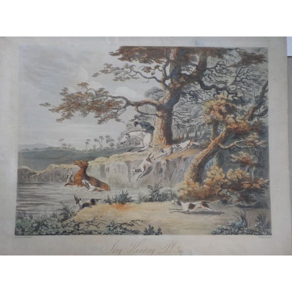 DEAN WOLSTENHOLME - hunting, deer hunting. Colored Aquatint by Richard Reeve. 1806