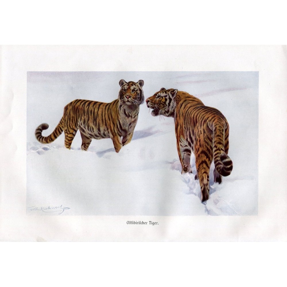 1900 Siberian Tiger Antique Print Chromolithograph German Natural History Illustration Brehm
