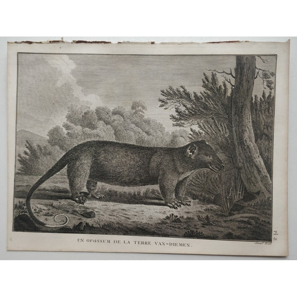 Description: Striking and highly detailed interesting 1785 copper engraved plate depicting a Tasmanian Devil.