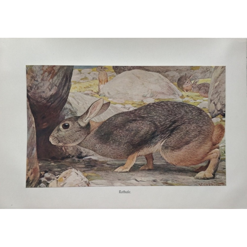 1890 Grey Hare Field Hare Antique Chromolithograph Print A.Brehm