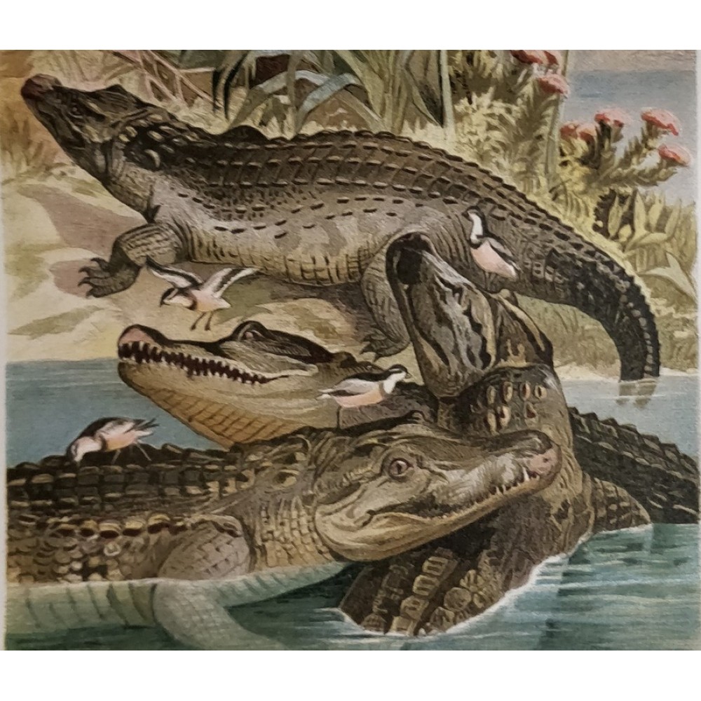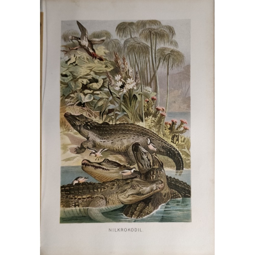 1890 A.Brehm Nile Crocodile Antique Chromolithograph Print