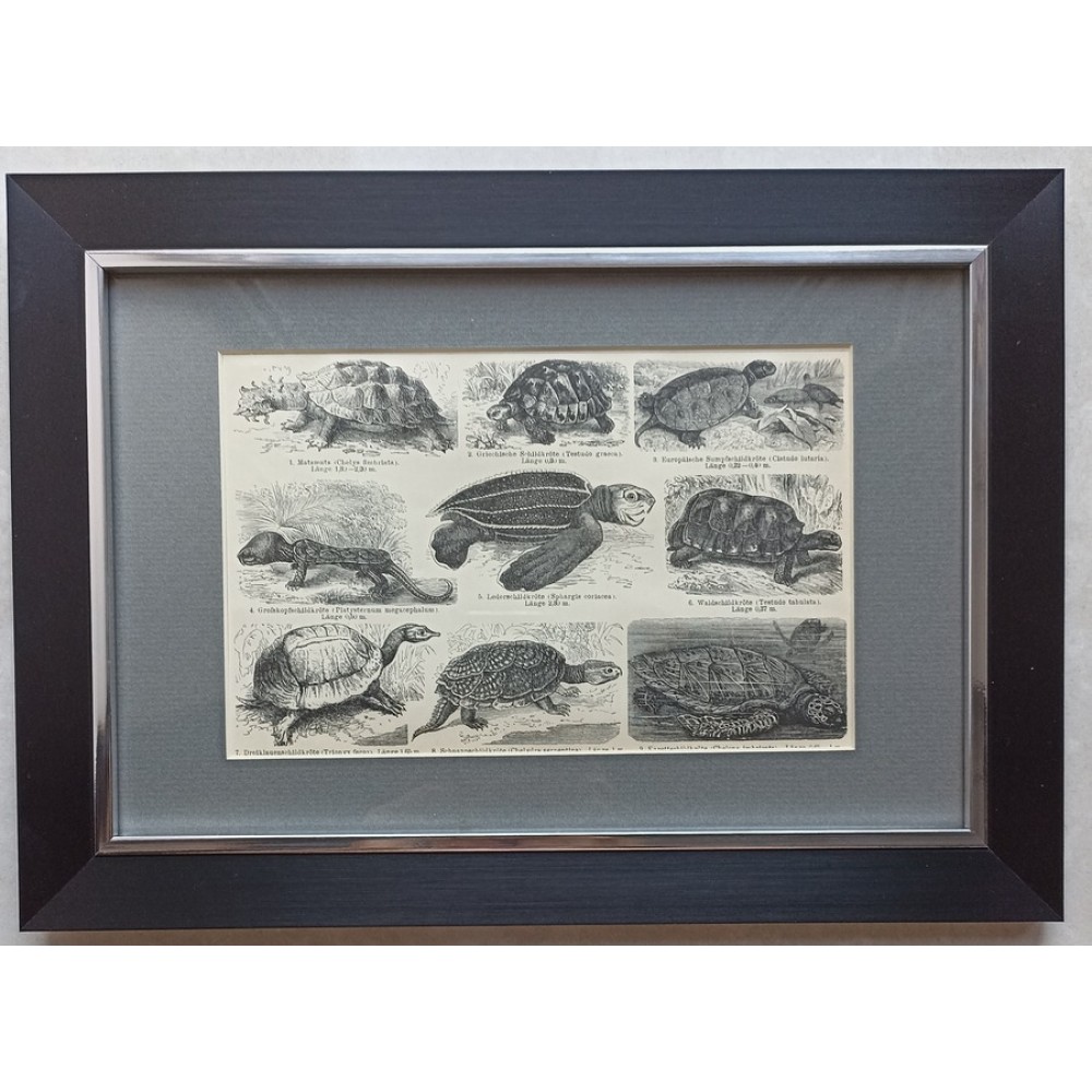 Antique German chromolithograph "Turtle" 1893, printed by Bibliographisches Institut, Leipzig.