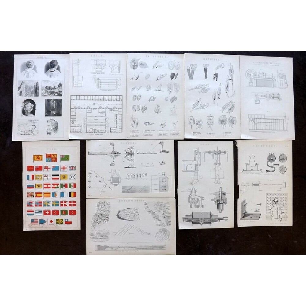 National Encyclopedia C1875 Lot of 10 Antique Science etc Prints. Book Plates