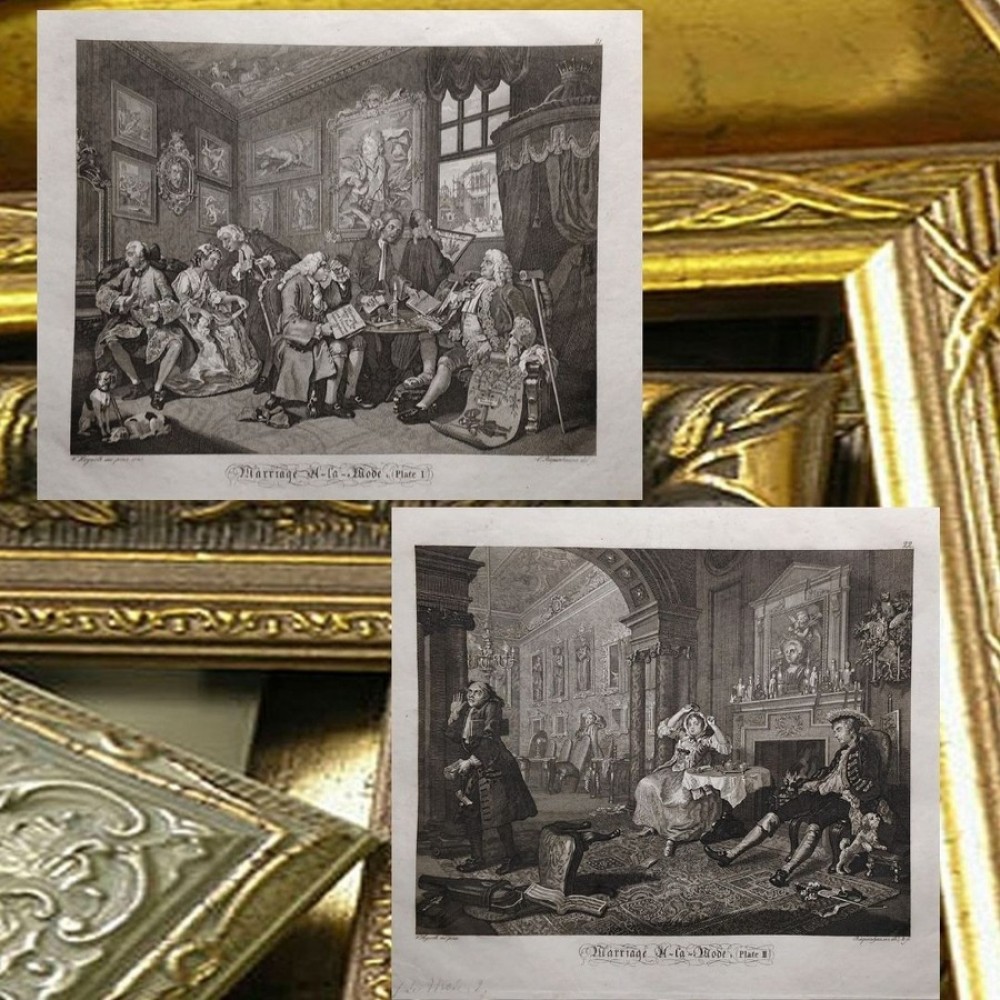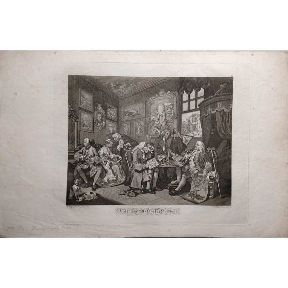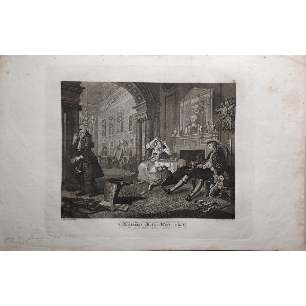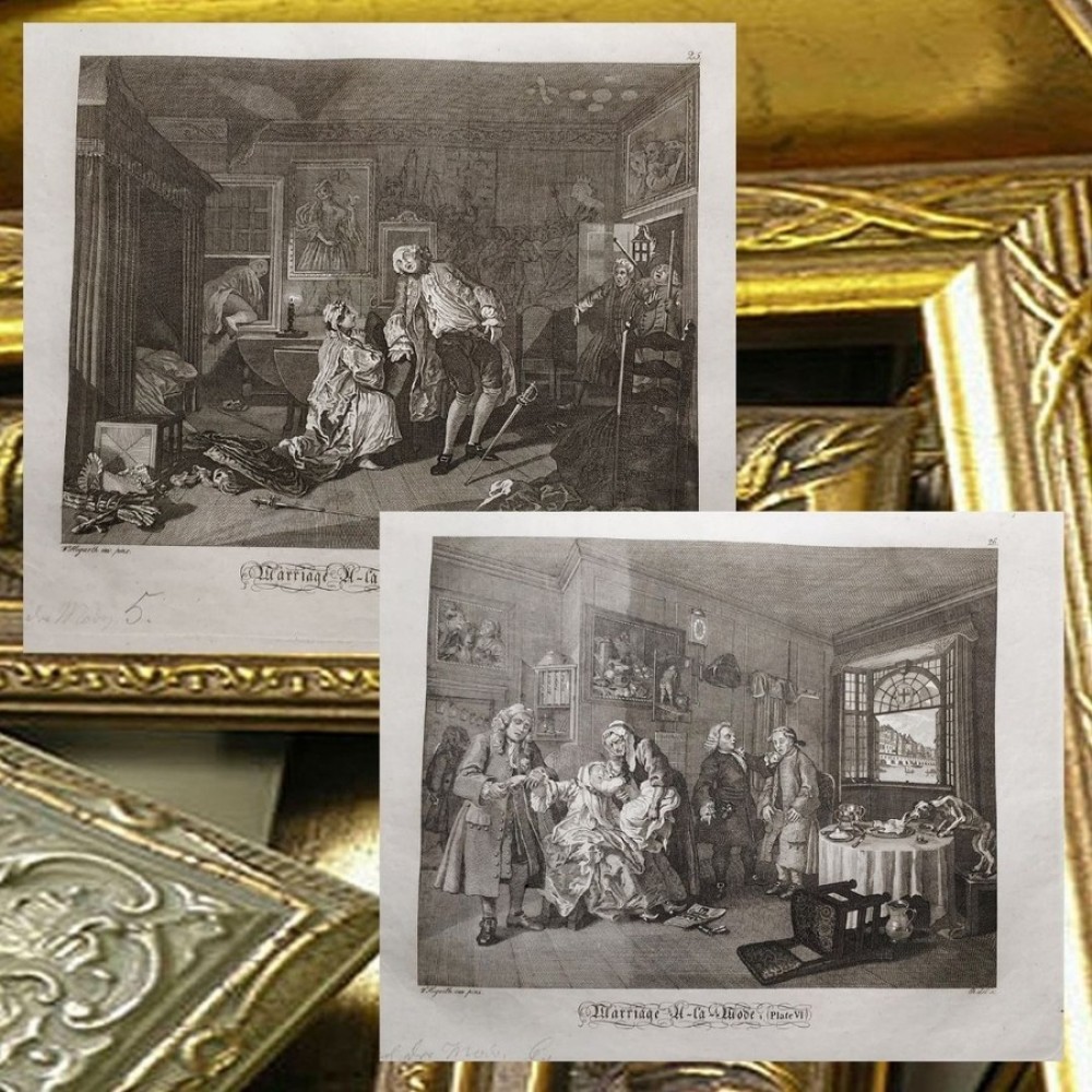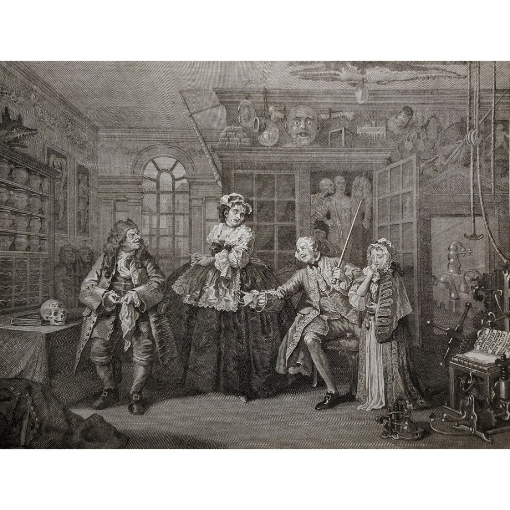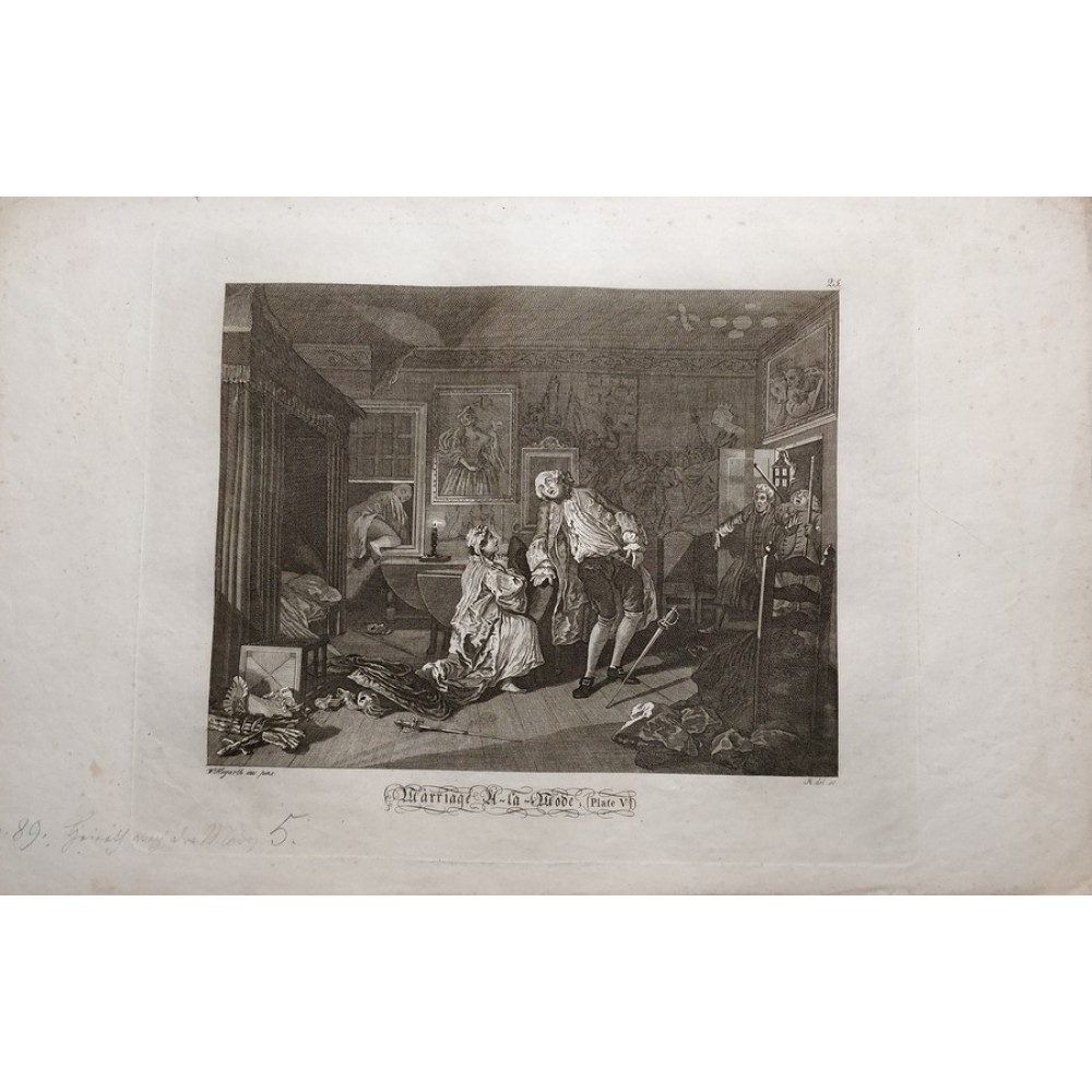 Six unique antique engravings "Marriage à la Mode" by Hogarth, 1820.