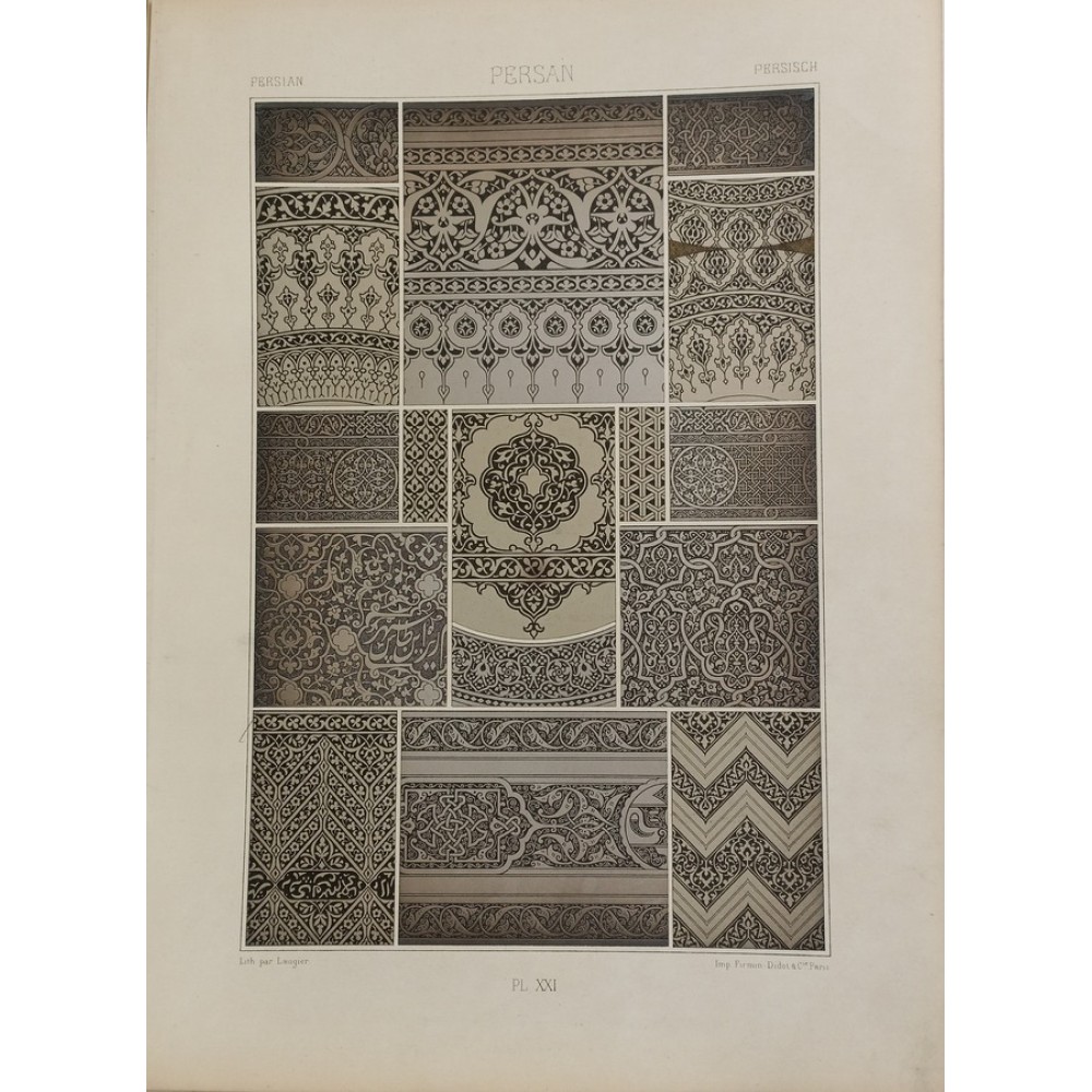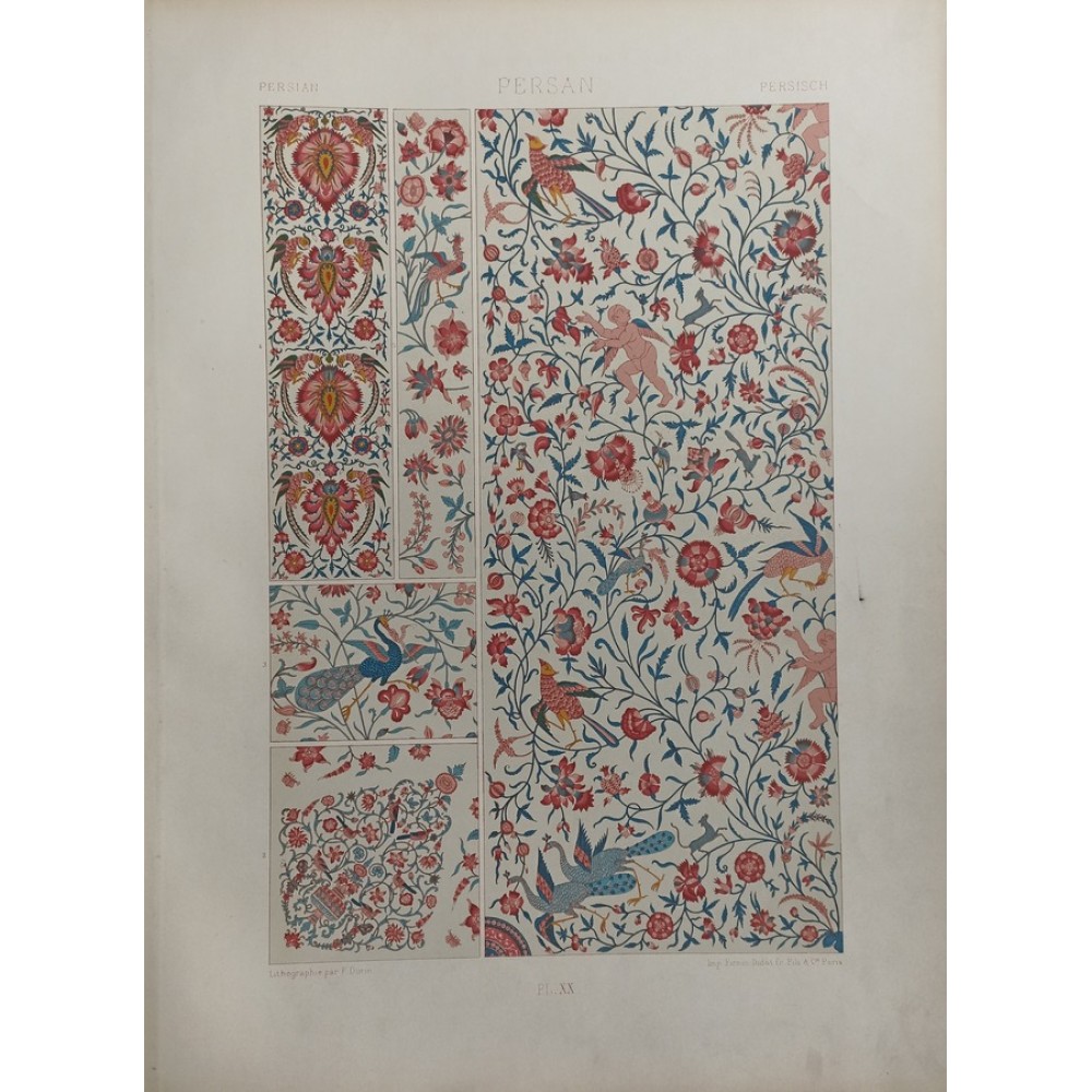 Persan Persisch 3 Farb-Lithographien Firmin-Didot Racinet Ornamente Dekore 1885
