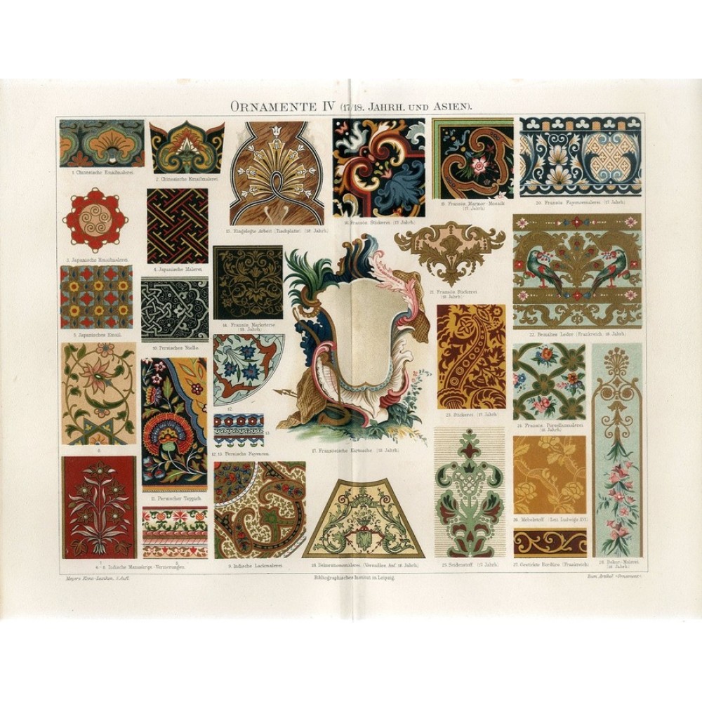 1895 ORNAMENTS 17/18 CENTURY & CHINA JAPAN INDIA PERSIA Chromolithograph Print !