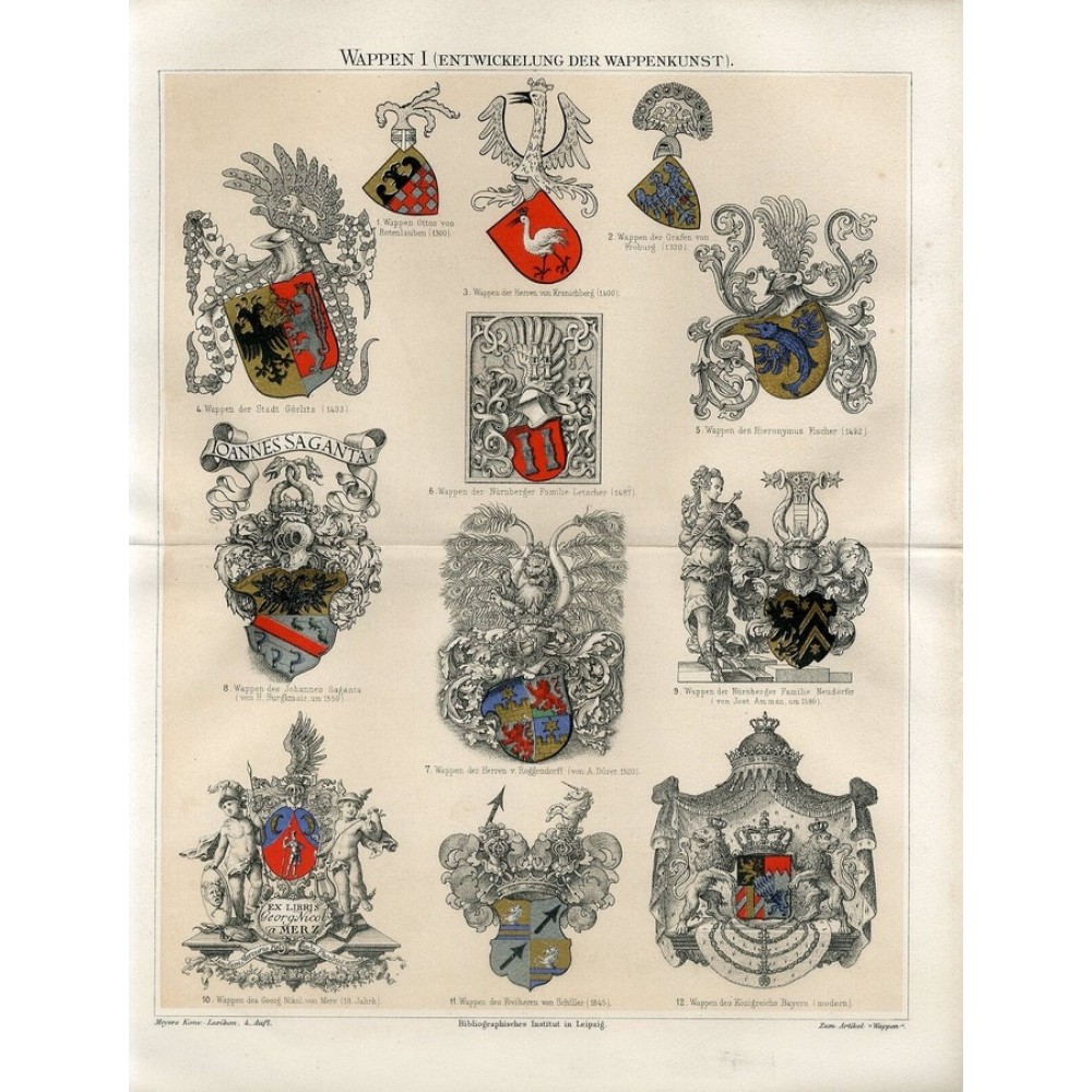 1887 HERALDRY GERMANY COAT OF ARMS Antique Chromolithograph Print