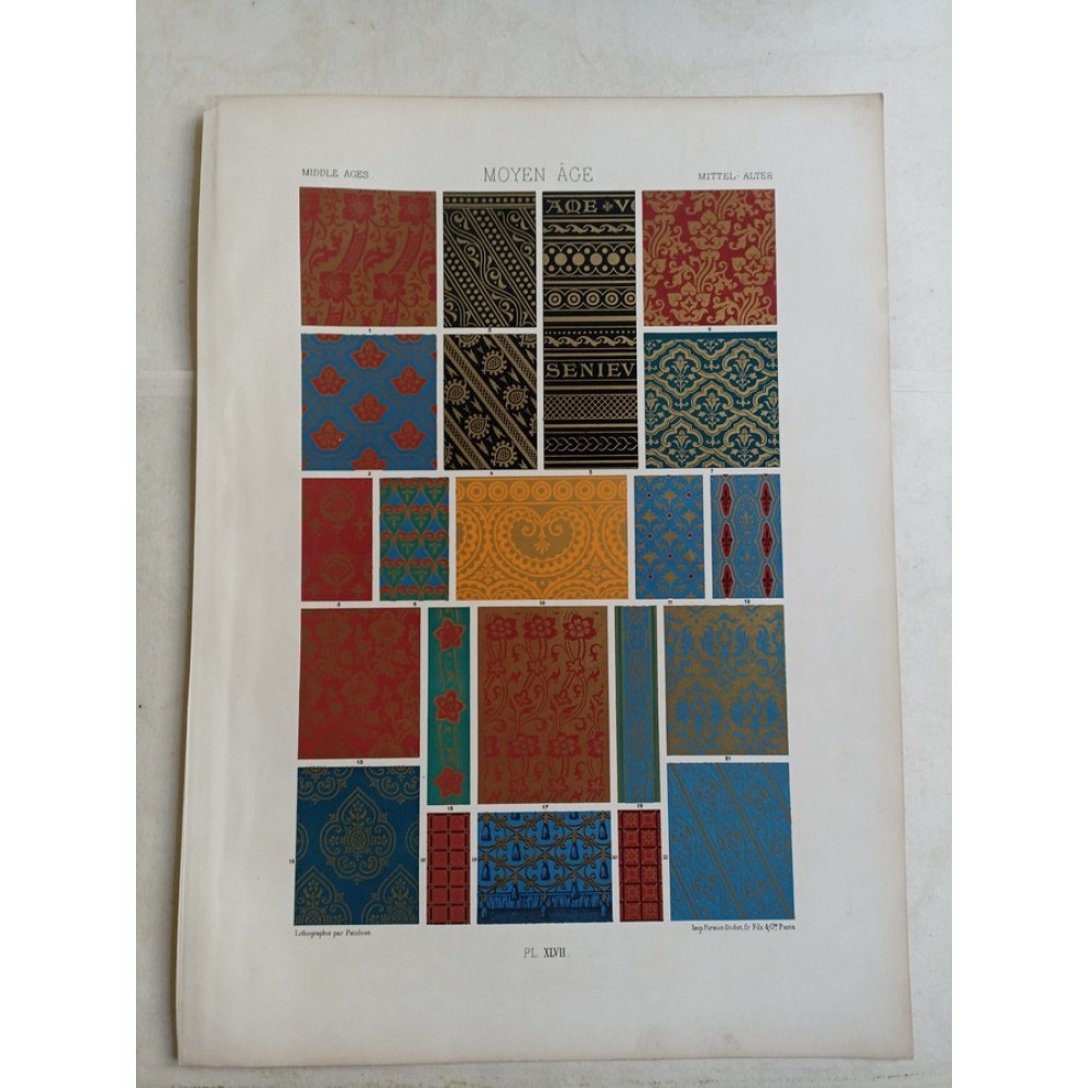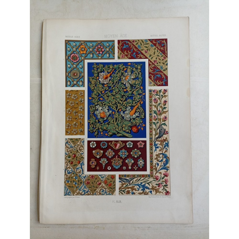 Moyen Age 3 Farb-Lithographien Racinet Ornement polychrom Mittelalter Dekor 1885