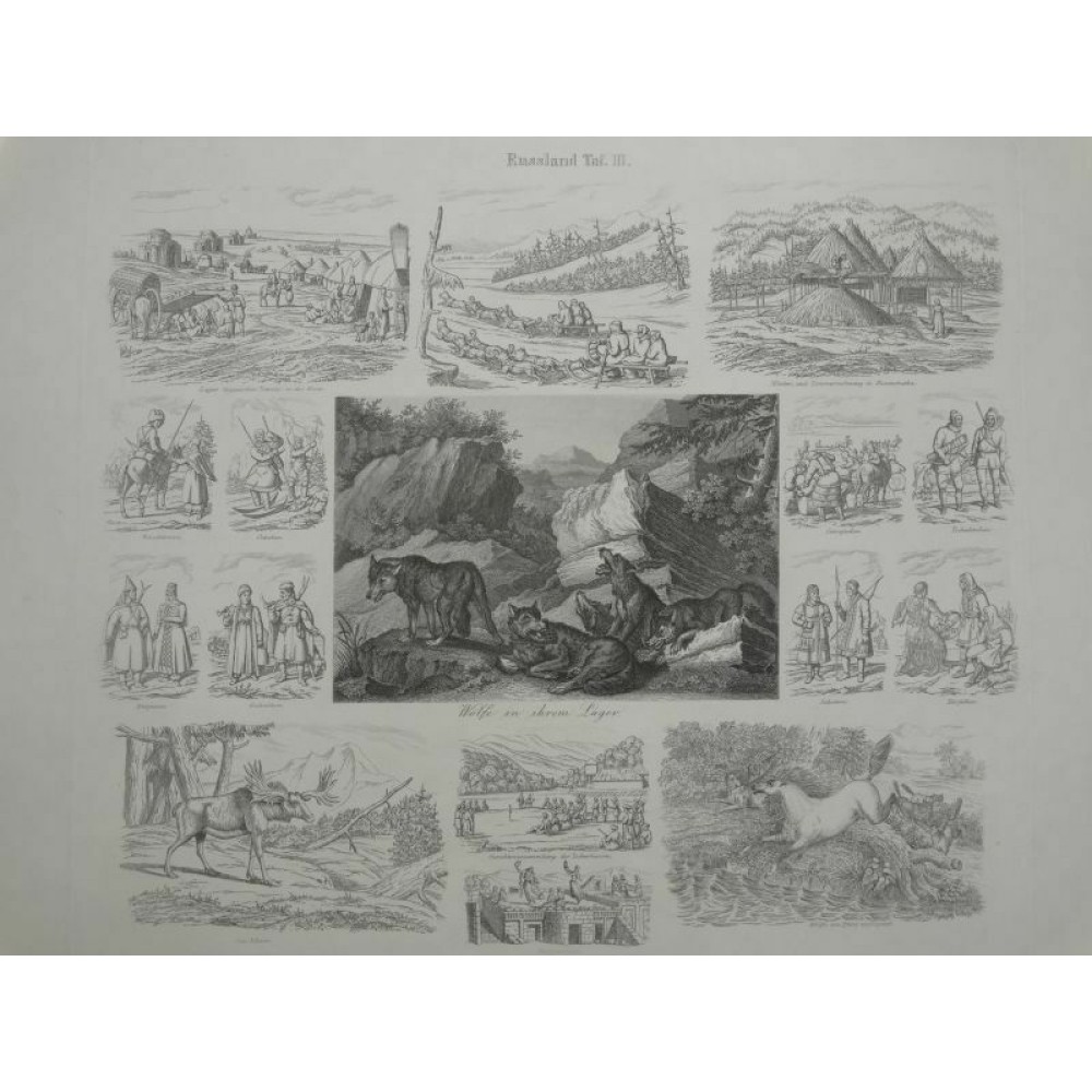 Russland Taf. III. A.Weger. [Leipzig, 1840]. - Russia, Tabl. III. Drawn and engraved by A. Weger. [Leipzig, 1840]. Steel engraving (etching, burin) within a passepartout. Print dimensions: 27.6 x 32 cm.