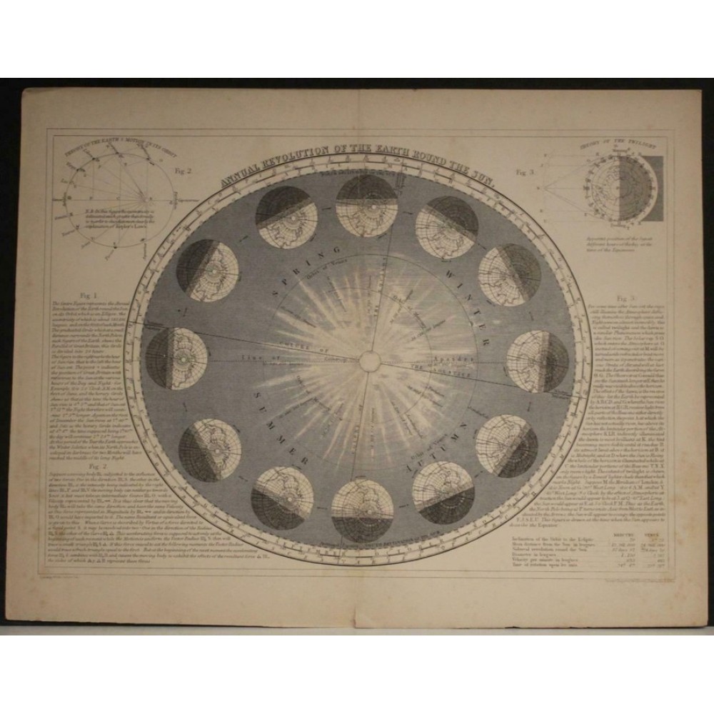 Striking and highly detailed very interesting 1850 John Dower's original lithographic map showing the Annual Revolution of the Earth Round the Sun.