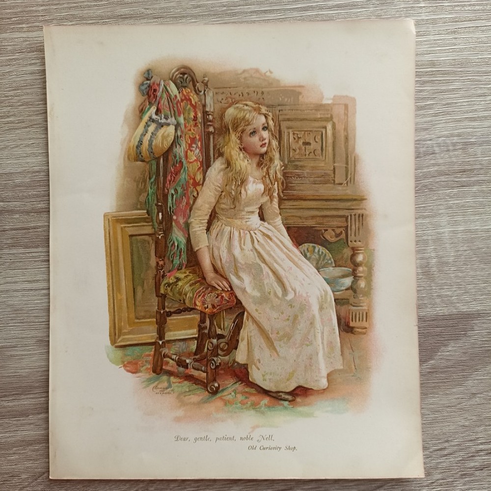 Original Antique Chromolithograph Print from Picture from Dickens with Readings Published by E. P. Dutton & Co with Illustrations by Ernest Nister 1895
