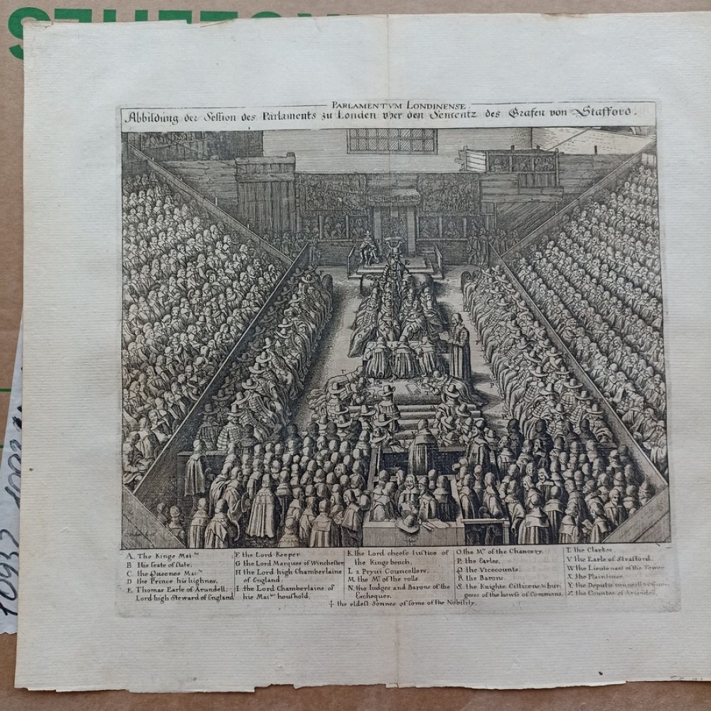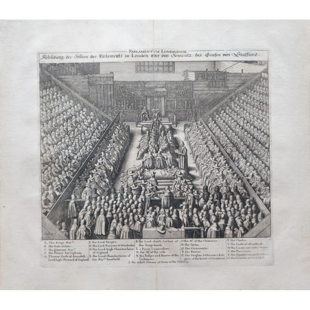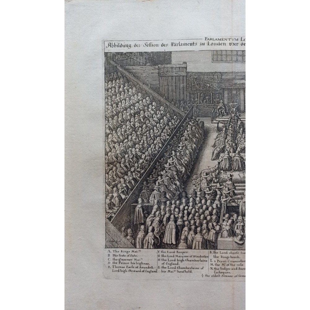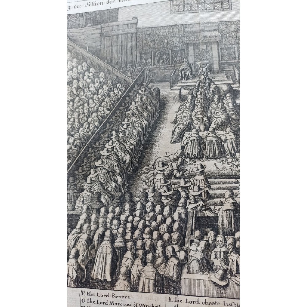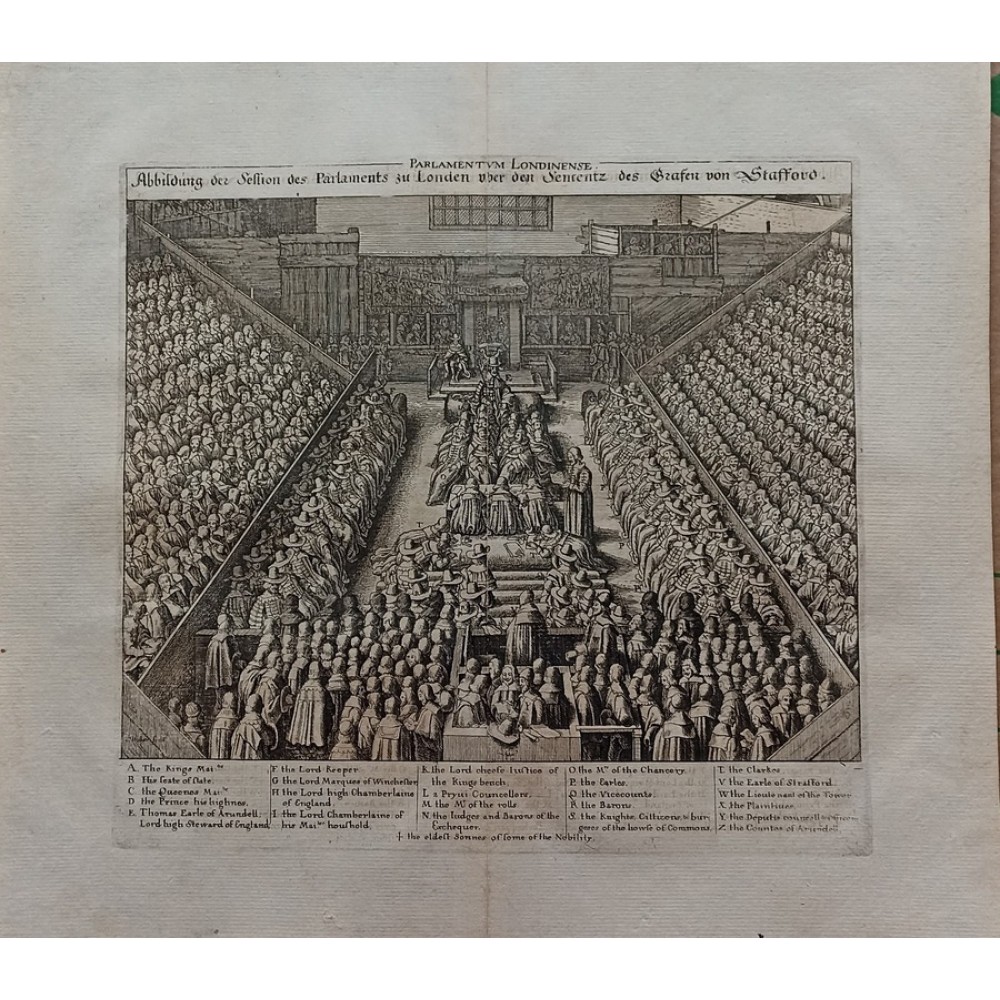 ANTIQUE COPPER ENGRAVED VIEW OF HOUSE OF PARLIAMENT Condition: --not specified Ended:Jun 11, 2022 , 7:03AM Winning bid: US $92.00 HOUSE OF PARLIAMENT TRIAL OF STRAFFORD LONDON ENGLAND 1630 HOLLAR ANTIQUE VIEW Description Parlamentum Londinense. Abbildung der Session des Parlaments zu London über den Sententz des Grafen von Stafford. Description: Striking and highly detailed interesting 1630 Wenceslaus Hollar's copper engraved sheet featuring the House of Parliament, London, during the trial of Strafford. The Earl is shown standing in the foreground seen from behind, wearing cloak and cap, facing judges and clerks in the centre and empty throne under canopy flanked by wooden boxes for king and spectators in the background; peers and members of parliament seated in tiers on both sides. The sheet is flanked with a key showing arrangement of court officials, attendants, etc. Date: 1630 ( undated ) Dimension: Plate size approx.: cm 37,1 x 33,7 Condition: Very strong and dark impression on good paper. Paper with chains. Map uncolored. Wide margins. Corners partially missing. Small foxing and browning. Small tear along the central fold, repaired on the verso. Map folded. Conditions are as you can see in the images. Mapmaker: Wenceslaus Hollar (23 July 1607 - 25 March 1677) was a prolific and accomplished Bohemian graphic artist of the 17th century, who spent much of his life in England. He is known to German speakers as Wenzel Hollar; and to Czech speakers as Václav Hollar. He is particularly noted for his engravings and etchings. He was born in Prague, died in London, and was buried at St Margaret's Church, Westminster. In the years 1627-8, active in Stuttgart; in the period 1629-30, worked for Jacob van der Heyden's publishing house in Strasbourg; in the years 1631-32, worked in various German towns including Frankfurt where he worked with Merian; 1633-36 resided in Cologne, employed by A.Hogenberg, visiting the Netherlands in 1634; 1636 joined the service of Thomas Howard, Earl of Arundel, with whom he travelled along the Rhine to Prague; December 1636, arrived with Arundel in London; 1644, to Antwerp after selling a number of plates to Peter Stent; 1652, returned to London, concentrating thereafter on book-illustration and cartography; 1666, named 'Scenographus regius' by the king but the Great Fire of that year brought to an end Hollar's projected view of the entire city; 1668-9, joined Lord Henry Howard on his expedition to Tangiers, but most of his late work consisted of routine illustrations for book publishers. Died in London in severely reduced circumstances. Оригинальное название:" Abbildung der Session des Parlaments zu London über den Sententz des Grafen von Stafford."