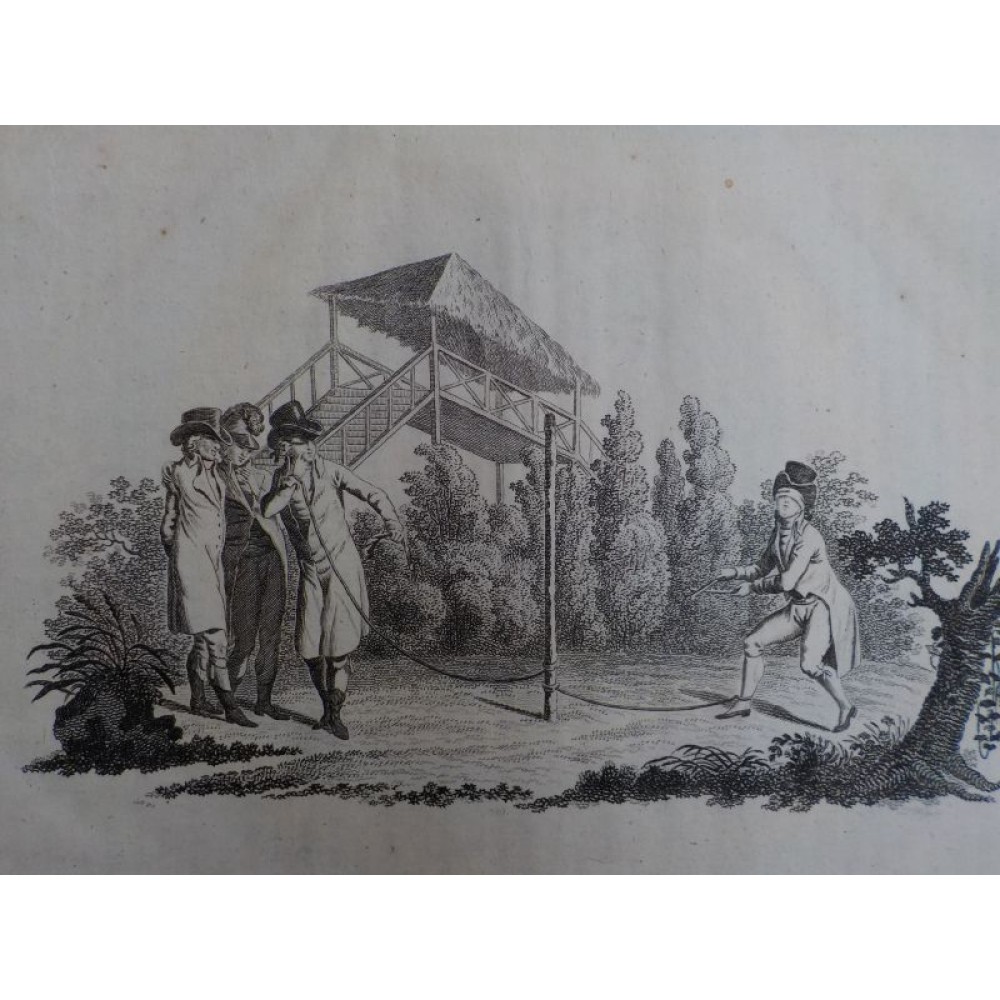 Two early lithographs (still referred to as engravings in the text) with accompanying text sheet (explanation of the games).