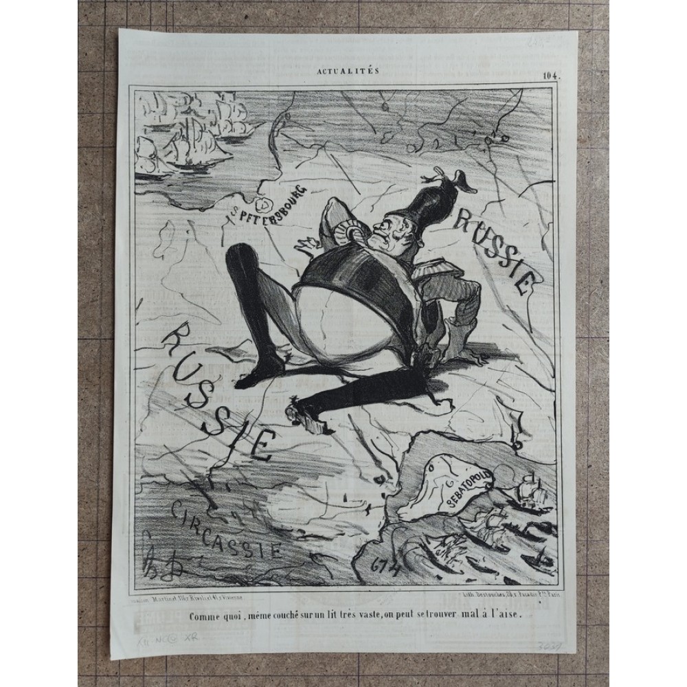 Description: Striking and highly decorative interesting 1850 approx. Honoré Daumier's originall ithographic allegorical map of Russia.