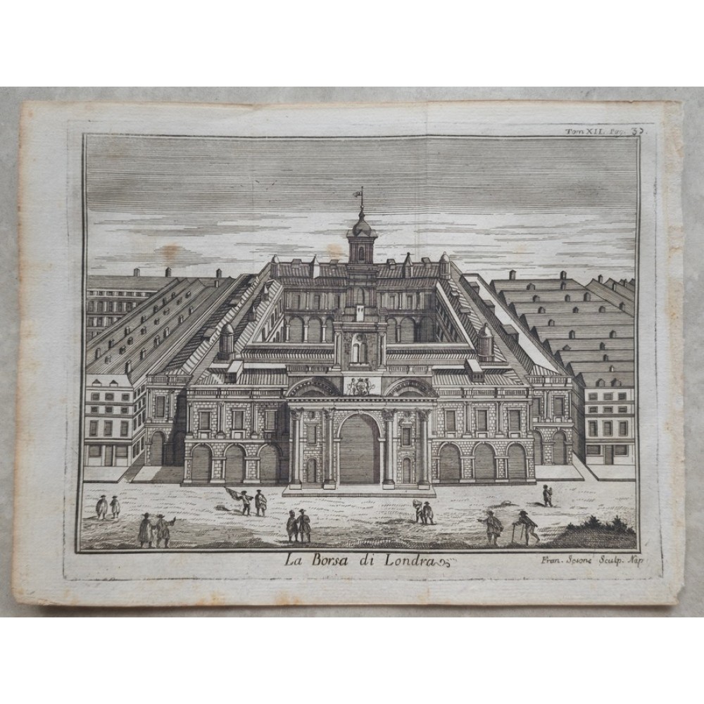 LONDON STOCK EXCHANGE ENGLAND 1754 THOMAS SALMON ANTIQUE COPPER ENGRAVED VIEW