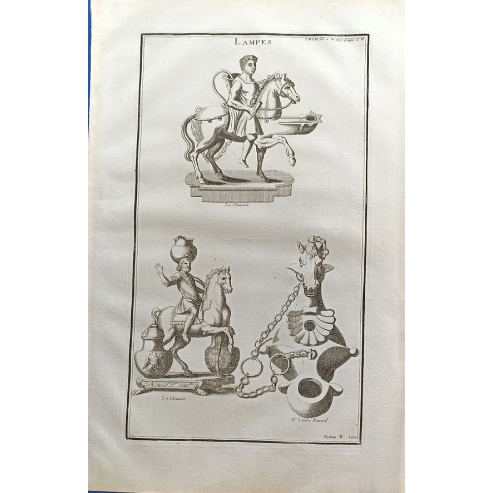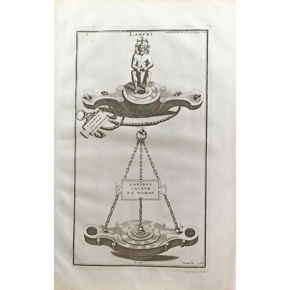 Lampes Funerailles 192 Antique Oil Lights funeral EA Montfaucon Copperplate 1719-show original title